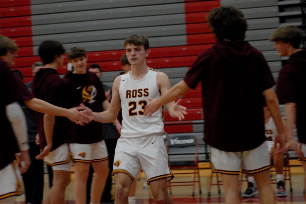 Ross’s Joe Schottelkotte found himself a few open looks and contributed 8 points in the 2nd quarter after having a scoreless first. Schottelkotte’s 8 helped Ross gain more of a foothold into the game, and Ross went into halftime trailing 27-22.